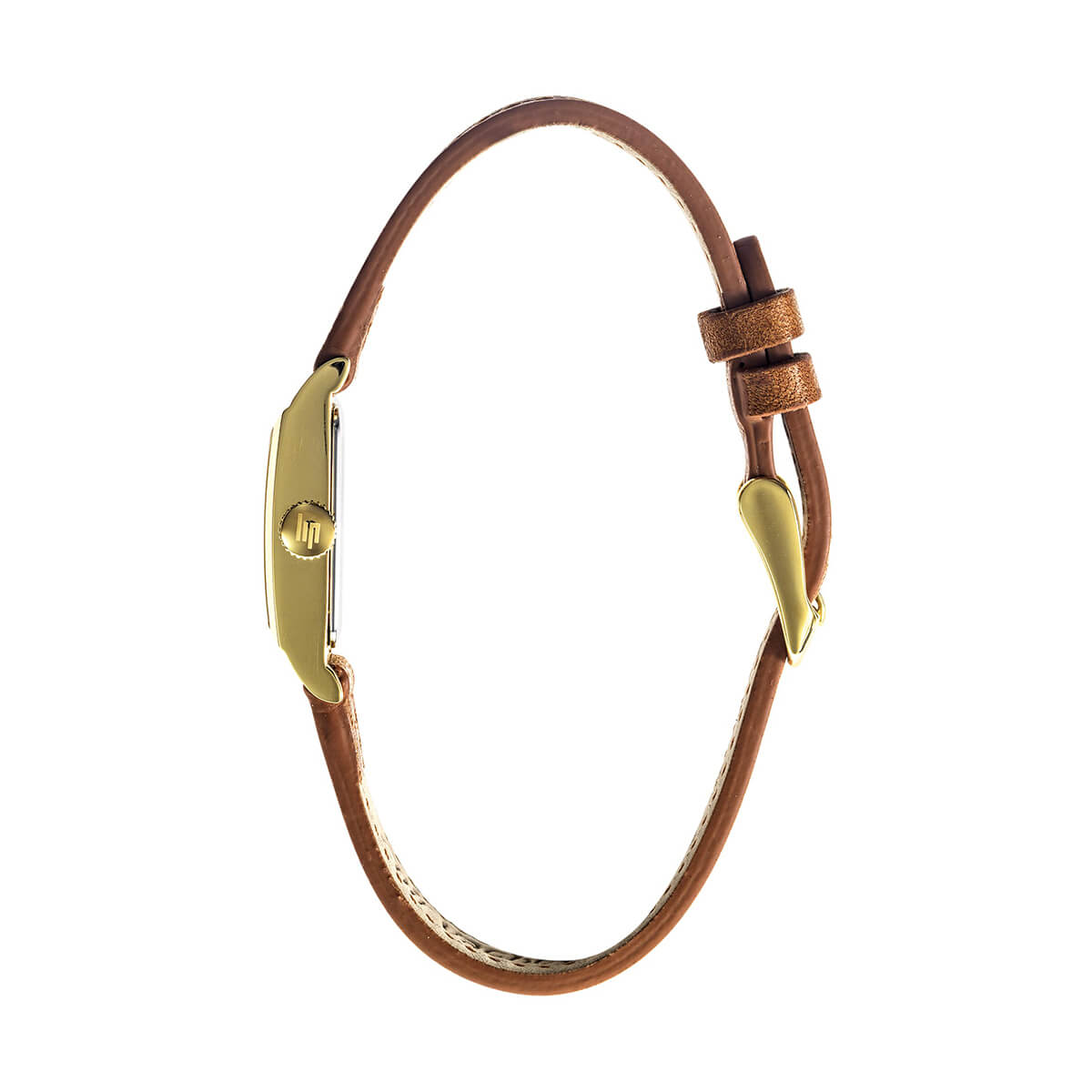 ストラップには、スムースなブラウンカーフレザーを採用。トーンオントーンのステッチが施され、LIPロゴ入りのゴールドのアルディロンバックルで仕上げられています。