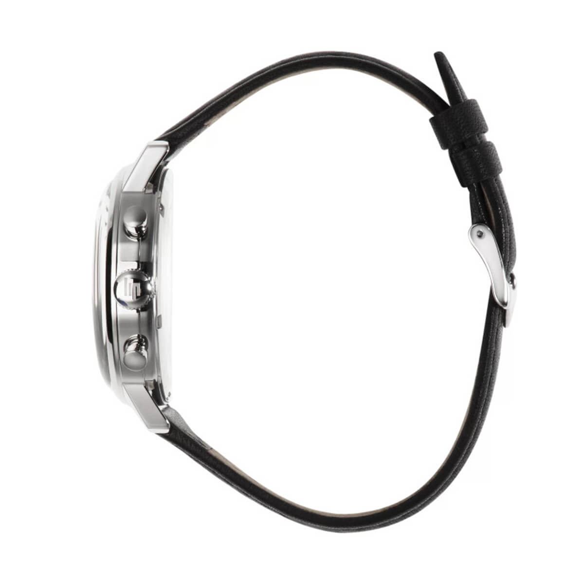 ラリー メカクォーツ クロノグラフ 39mm シルバー ホワイトダイヤル ブラックレザー